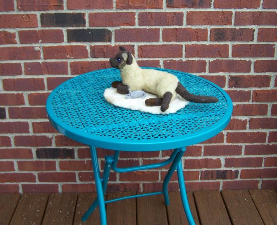 DOB 3/30/2015, 10" tall (25.5 cm) and 16" long (41 cm). It took me several weeks to complete this needle felted project. I really enjoyed creating this set of sculptures.