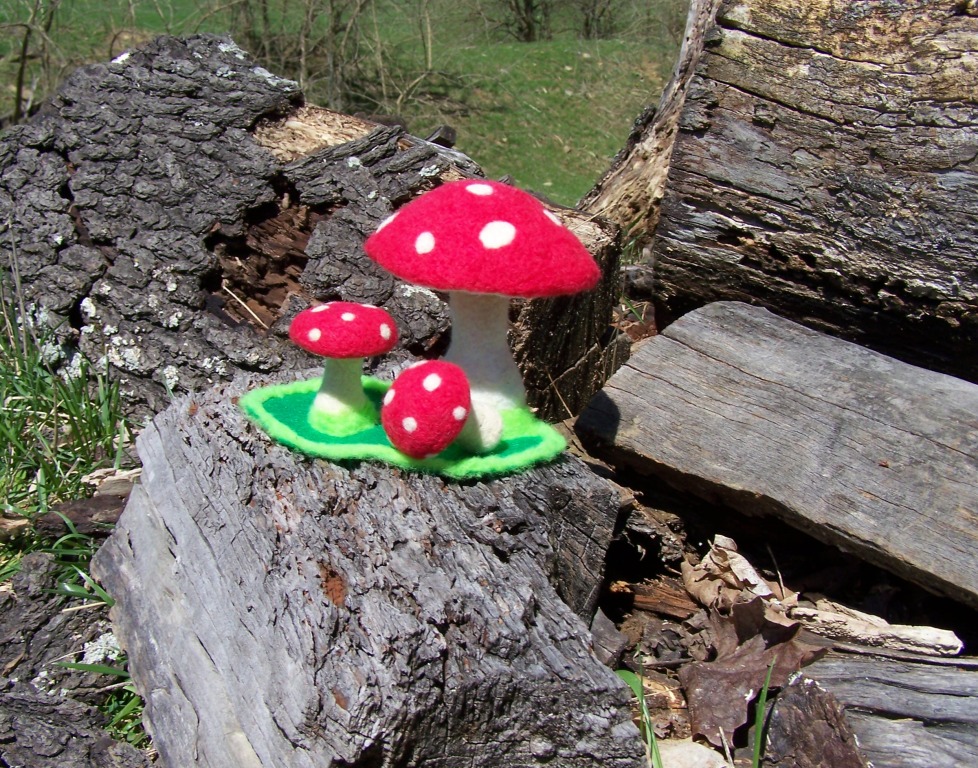 "Amanita" mushrooms in Fiber Art